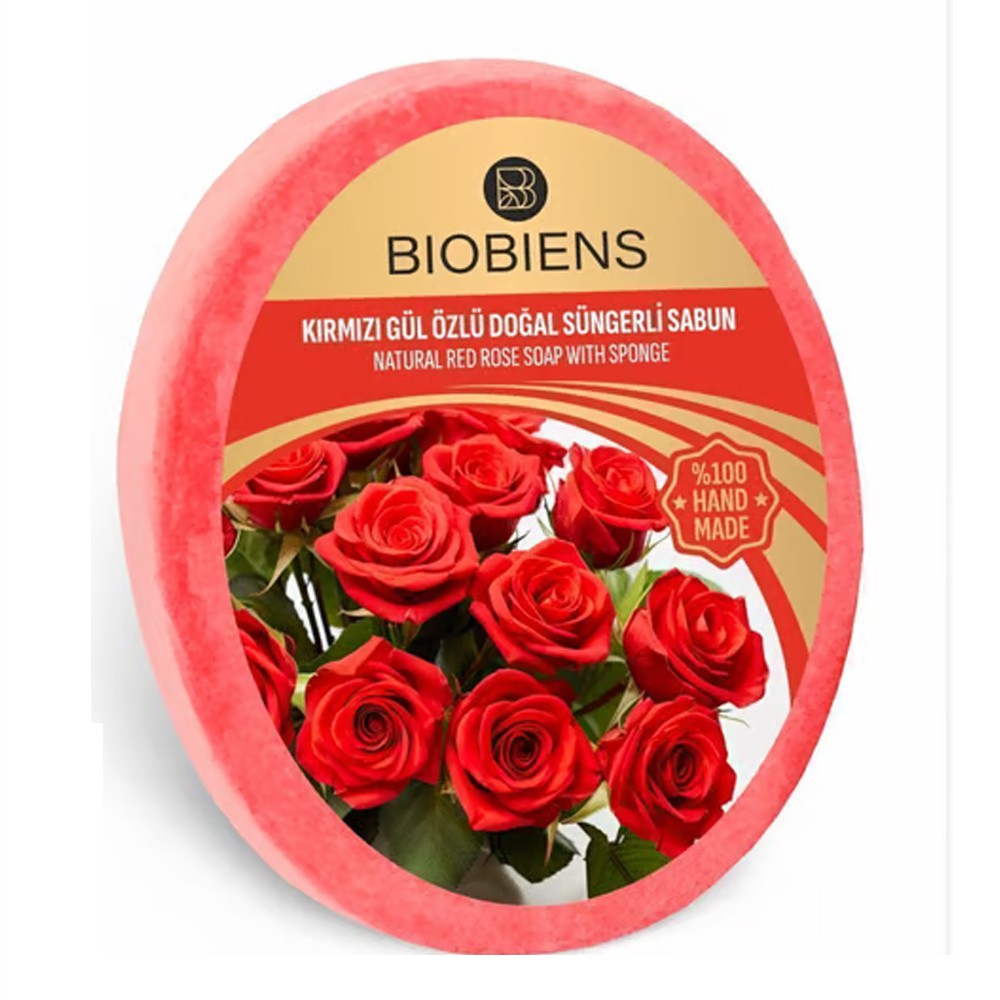 BIOBIENS KIRMIZI GÜL SÜNGERLİ SABUN 130GR.