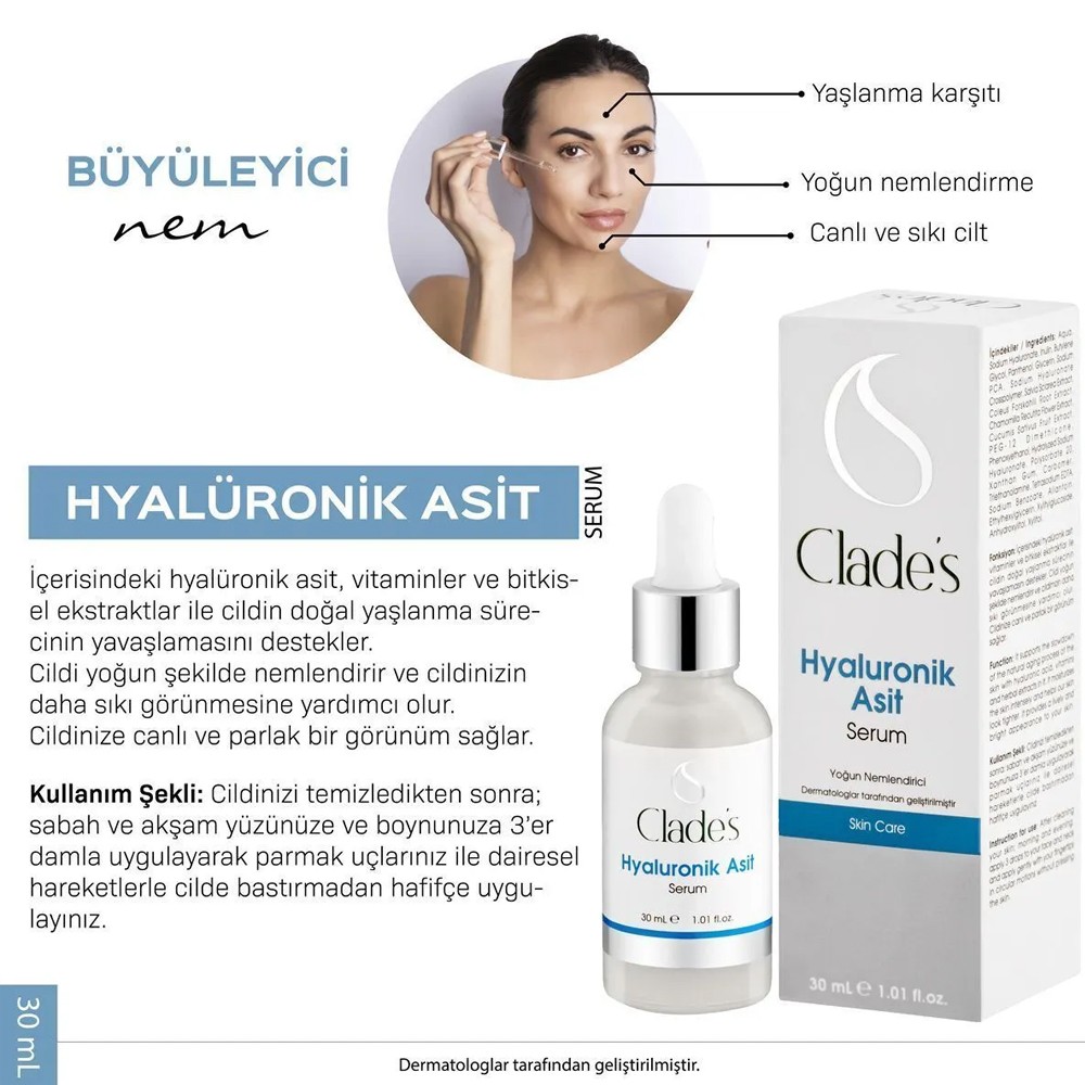 CLADES HYALURONİC ASİT YOĞUN CİLT SERUMU 30ML.